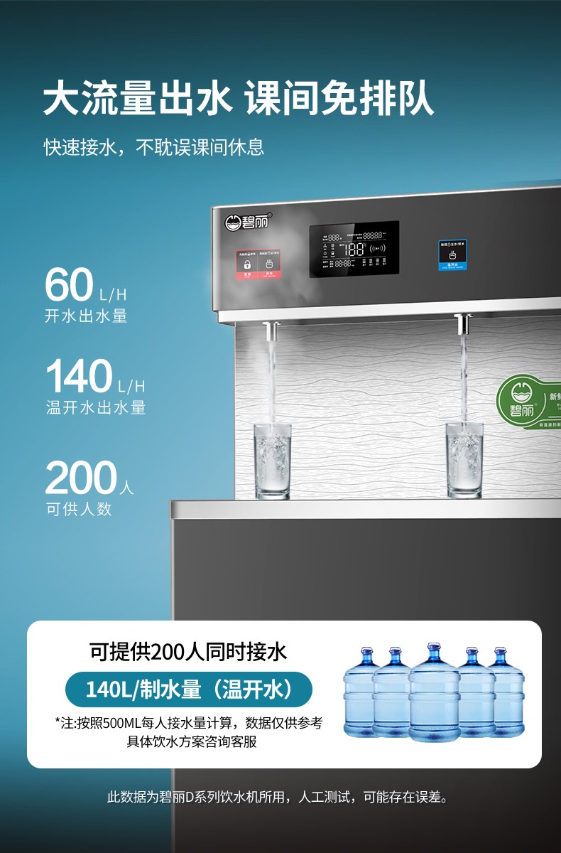 • 供 水 量:開(kāi)水60升/時(shí),溫開(kāi)水140升/時(shí)